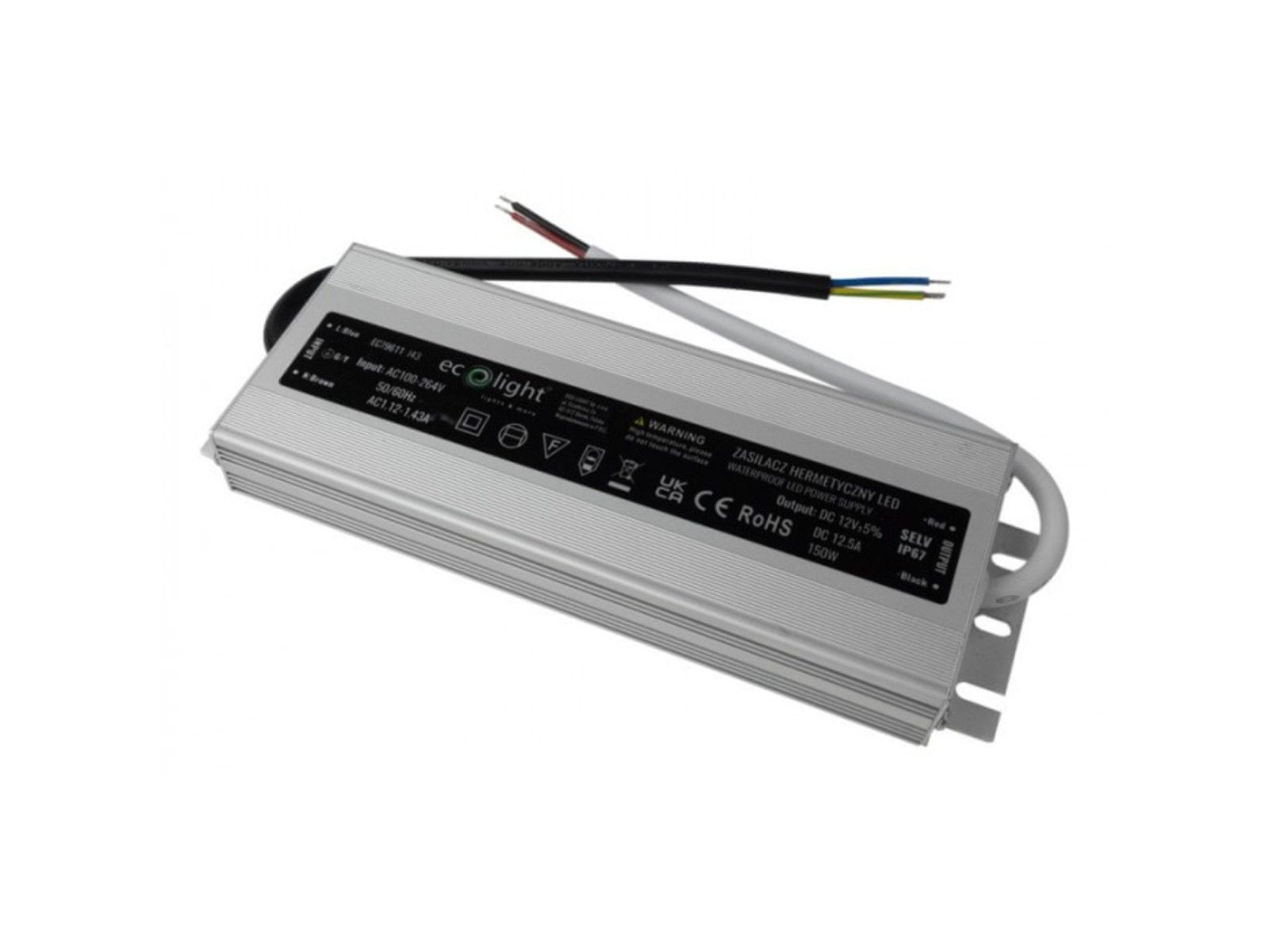 Eco light Hermetično napajanje LED 150W 12V 12.5A, vodoodporen 200x65x22 mm