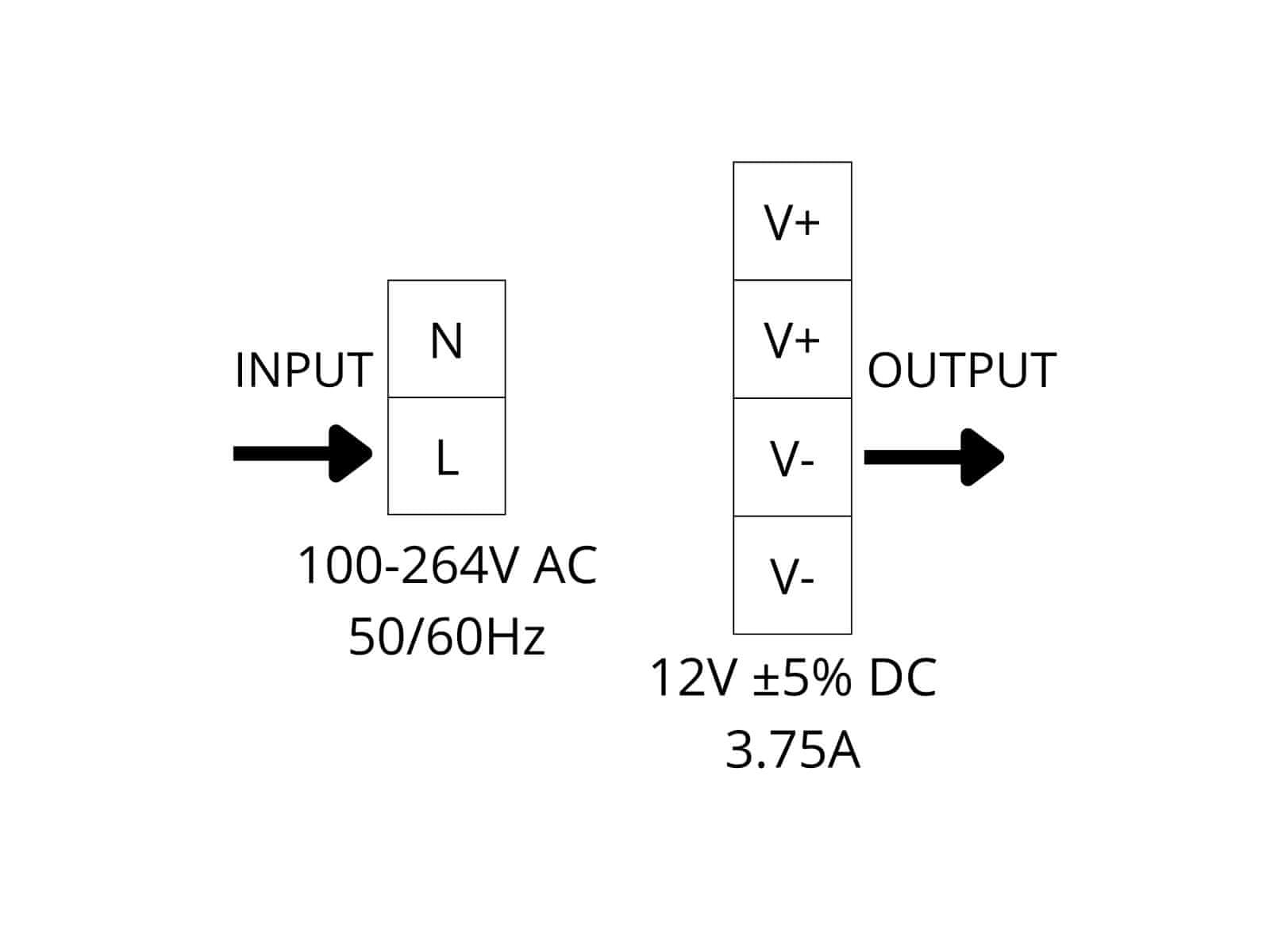 • 45 W moč, 12 V enosmerna napetost – Stabilna napajanje za LED in krmilne sisteme.