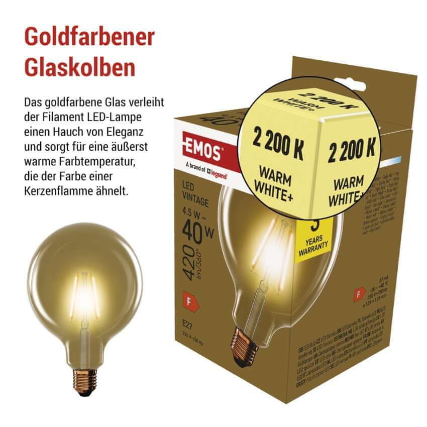 Emos LED žarnica Vintage G125 / E27 / 4,5 W (40 W) / 420 lm / Toplo bel