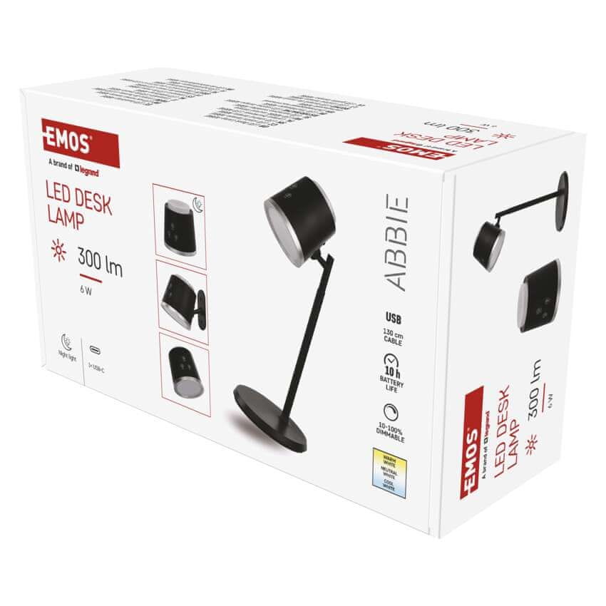 Emos Namizna LED svetilka ABBIE, polnilna, črna