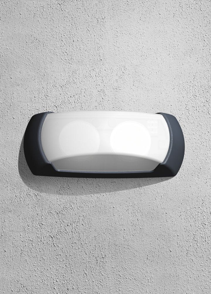Moderna in elegantna ovalna stenska svetilka z visoko zaščito pred vdorom: IP66, izdelana iz črnega ohišja iz smole, odpornega na udarce, in difuzorja iz bele plastike (pmma). Svetilka je zaščitena z UV-žarki, brez rje in korozije. Svetilka primerna za vašo fasado in teraso.