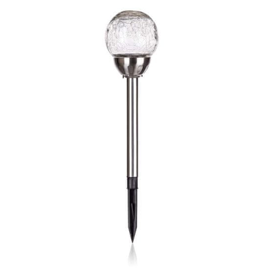 Solarna svetilka iz nerjavečega jekla z višino 38,5 cm in steklenim senčnikom v obliki krogle s premerom 10 cm z dekoracijo pajkove mreže je funkcionalen in dekorativen del vsakega vrta. Vir svetlobe – 1 x bela LED in 1 x barvna LED. Med delovanjem lahko s stikalom izberete način stabilne bele svetlobe ali spreminjajočega se barvnega spektra. IP 44.