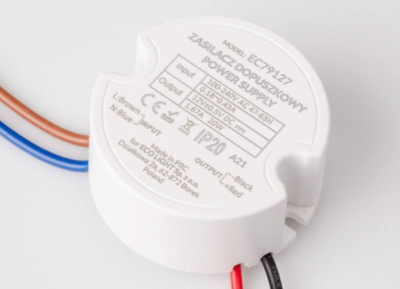 Kompakten podometni napajalnik, namenjen za napajanje notranjih LED inštalacij z napetostjo 12 V. Oblika in velikost napajalnika omogočata vgradnjo v najbolj popularno razvodno dozo fi 60. – Zaščita: IP20