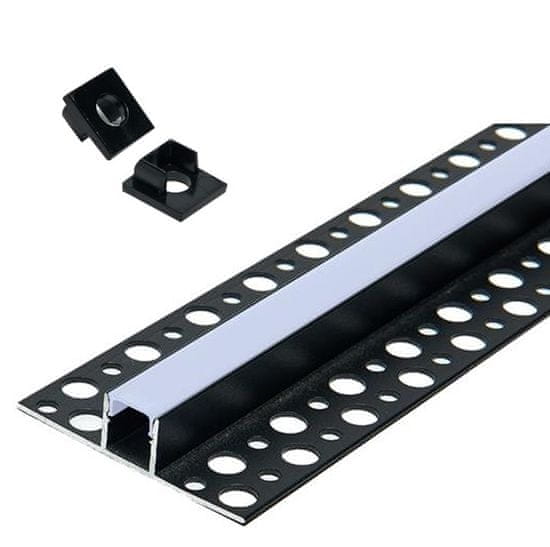 master LED ALU profil VGRADNI 2m za LED trak za v mavčno ploščo – knauf črn izbočen