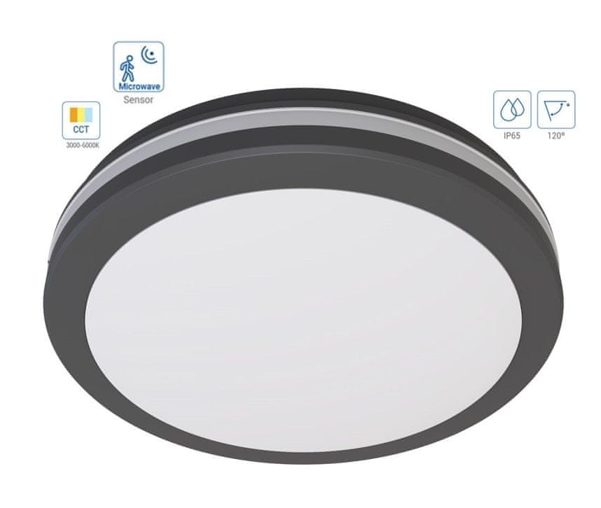 Optonica LED plafonjera 20W 3CCT 1900lm IP65 s senzorjem črna
