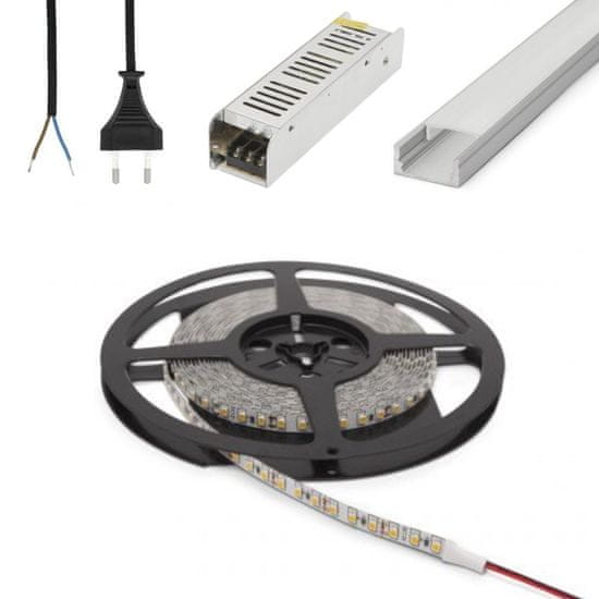 PHENOM Set 5x 1m ALU profil mat + LED trak 9,6W/m 6000K 5m + napajalnik 60W + priključna vrvica
