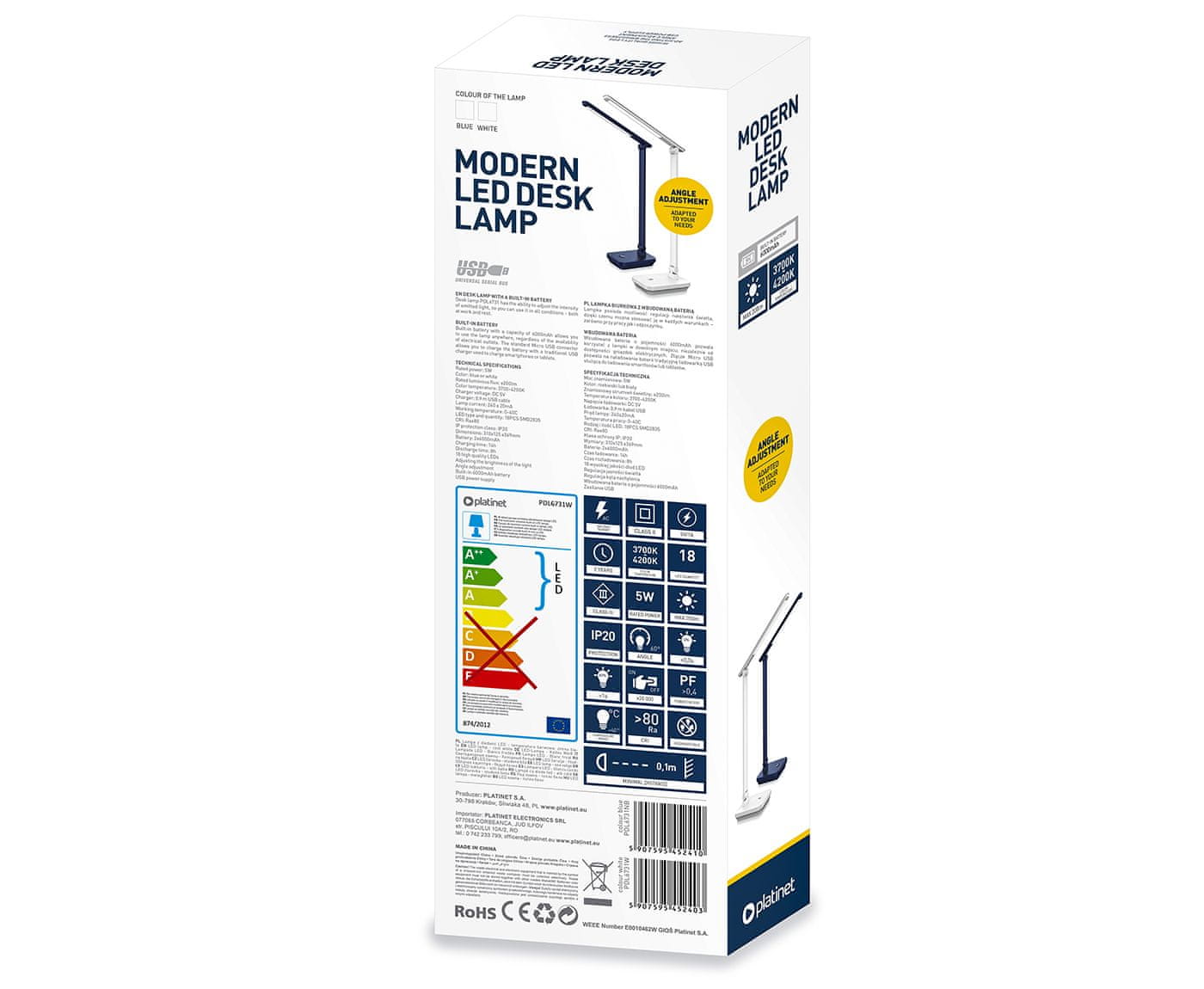 Moderna, nastavljiva in zložljiva namizna LED svetilka, proizvajalca PLATINET, je izjemno varčen, okolju prijazen in priročen pripomoček v vašem domu, na vikendu ali pisarni. Nastavljiva svetilnost in 18 LED SMD diod omogočajo enakomerno osvetlitev delovne in pisalne mize, nočne omarice v spalnici ali kotička za branje.