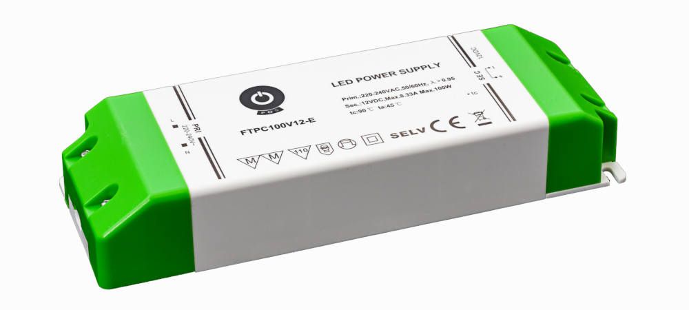 FTPC100V12-E: FTPC100V12-E: Napajalnik za pohištvo za LED 12V 8,3A, 180–264Vac, plastika, dimenzije 179,4 × 62,5 × 30,6 mm Celoten opis