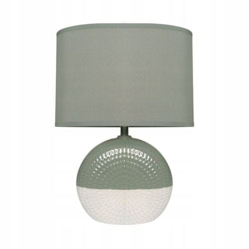 Namizna svetilka Fiona Gray E14 za nočno omarico. Namizna svetilka Fiona Gray za nočno omarico za spalnico z navojem E14. Deluje z viri svetlobe z največjo močjo 25 W. Estetsko izdelana svetilka z jeklenim podnožjem in senčnikom iz tkanine, ojačane s plastiko. Dekorativna svetilka v sivi, beli in bež barvi, vključuje stikalo. Parametri: Material: keramika, nerjaveče jeklo, tkanina, ojačana s plastiko Dimenzije [mm]: 340×228×127 Barve: siva/bela/bež Napajanje: 220–240V 50/60Hz Moč: največ 25W Vrsta podnožja: E14 Odpornost na prah in vlago: IP20 Vir svetlobe: žarnica/LED Vir svetlobe ni priložen Zamenljiv vir svetlobe Stikalo je priloženo Brez nastavitve smeri svetlobe Samo za notranjo uporabo