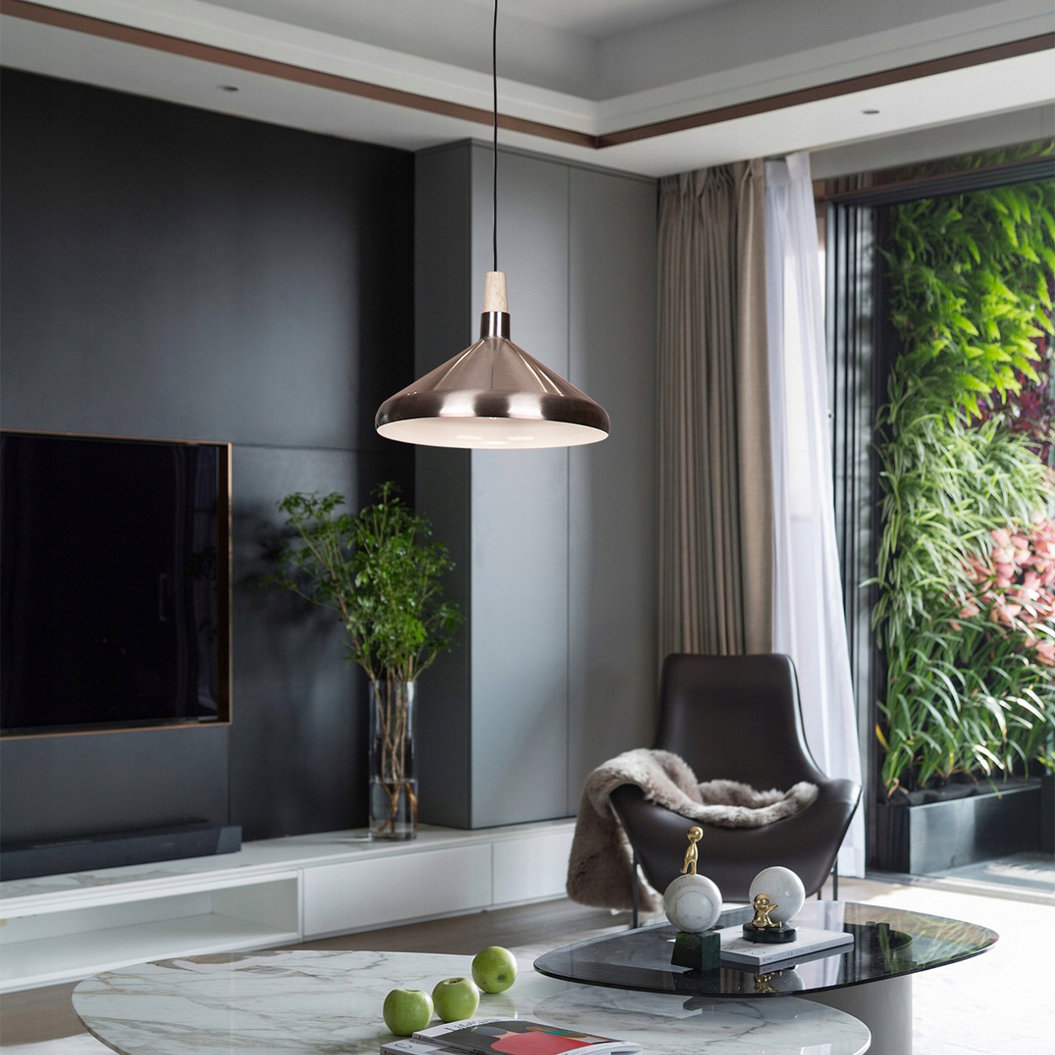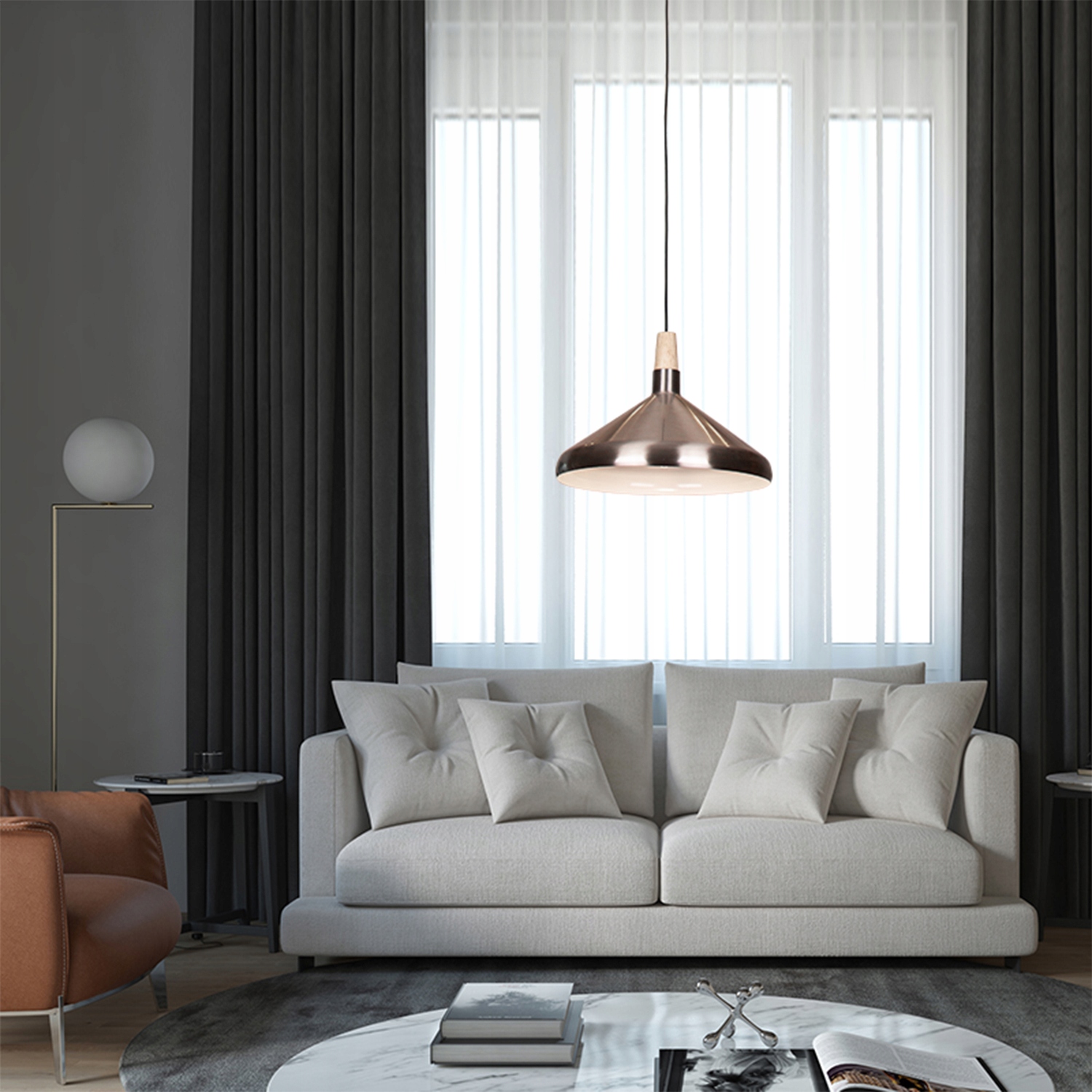 Viseča svetilka je eleganten in sodoben dodatek vsakemu prostoru. Njena okrogla in konveksna oblika se popolnoma prilega vsakemu dekorju. .Idealna za namestitev v