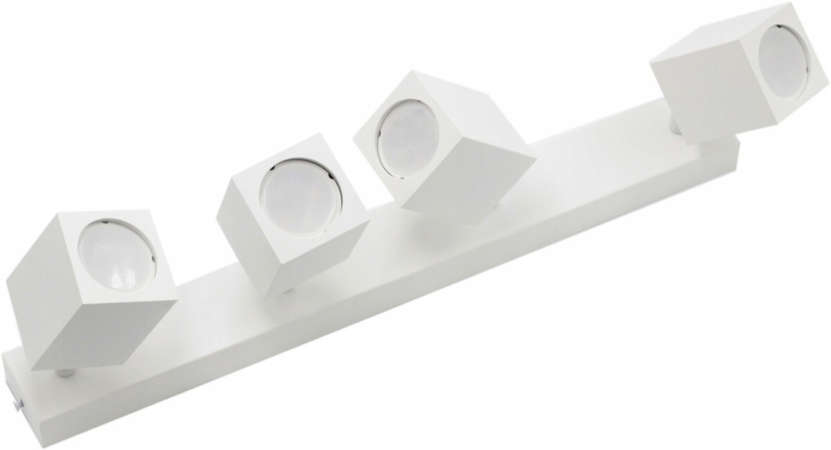 Stenska svetilka v obliki kovinskega pravokotnika, nameščena na steno, s štirimi reflektorji, ki jih je mogoče nastaviti pod poljubnim kotom.