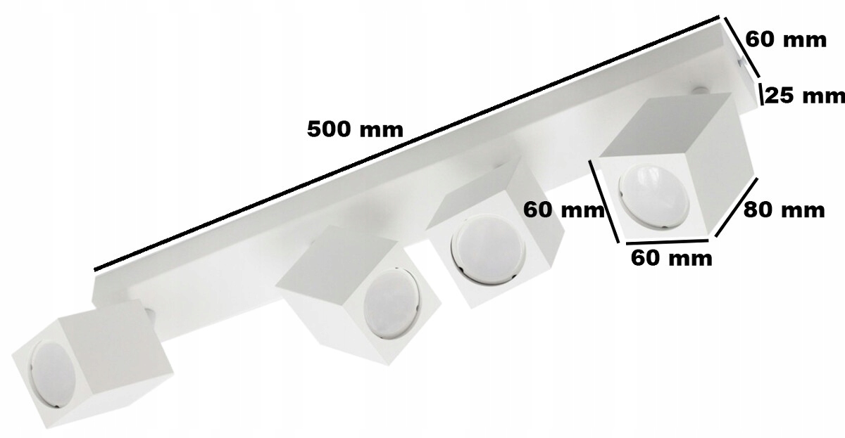 - Oblika in dimenzije: podstavek: 500×60×25mm; reflektor: 80×60×60 mm; skupna višina: 150 mm