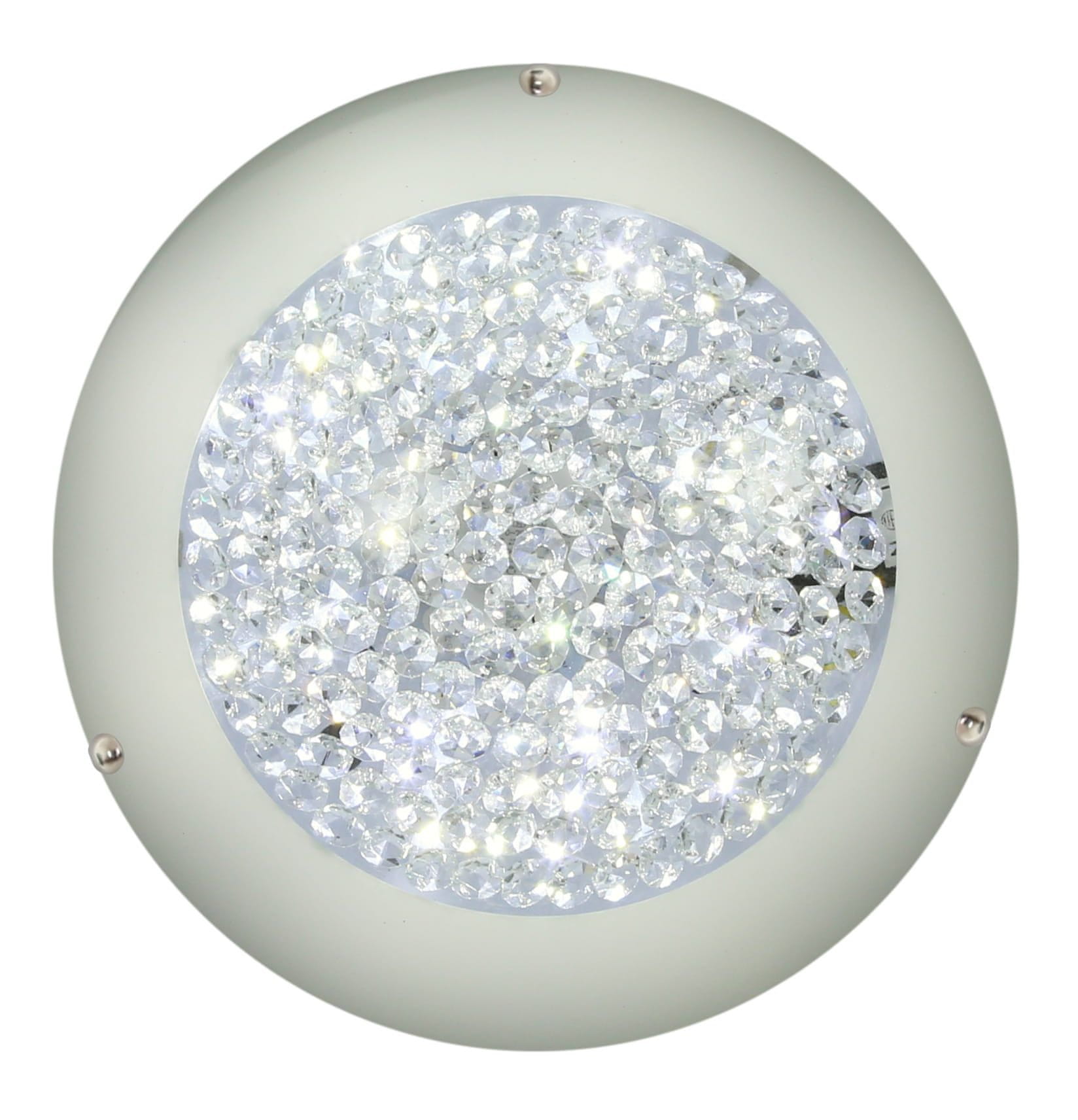 Ta stropna svetilka Candellux, model: 14–64073, je predstavnica serije PRISTINA. Svetilka je izdelana iz: steklenega senčnika, kovinskega podnožja. Vir svetlobe je 1 x LED. Opis izdelka proizvajalca: Vrhunski izdelek: ukrivljen steklen senčnik, okrašen z originalnim vzorcem, doseženim med proizvodnim procesom s peskanjem, poliranjem in barvanjem, zunaj poliran, učinek pa je obogaten z ročno lepljenimi kristali; na voljo v dveh velikostih in treh različnih barvah svetlobe (6500K hladna, 4000K nevtralna; 3000K topla). Dimenzije: višina: 10 cm, širina: 40 cm, globina: 40 cm. Teža: 1,8 kg.