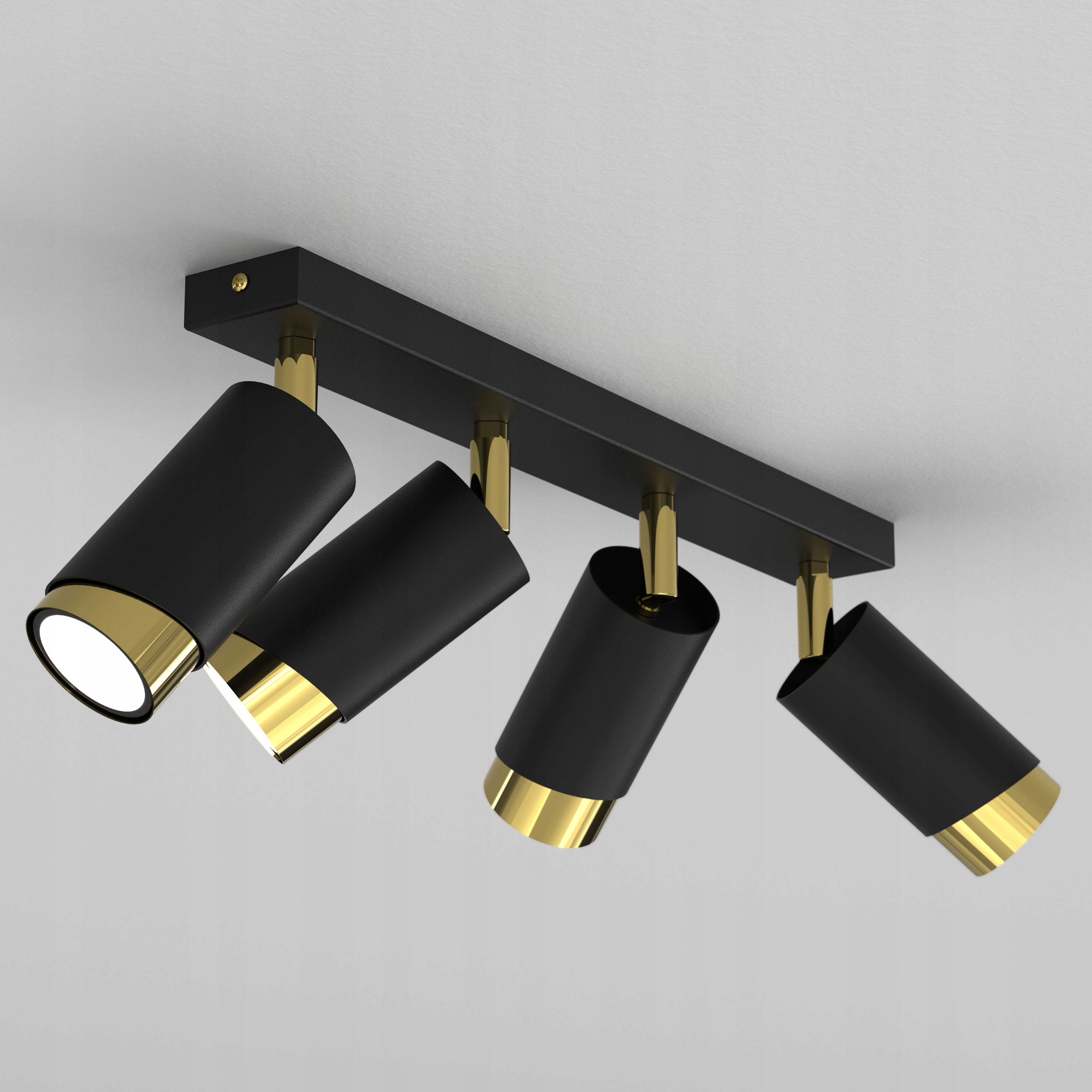 Stropna svetilka LED trak nastavljiva 4× Gu10 poševna črno-zlata Celoten opis