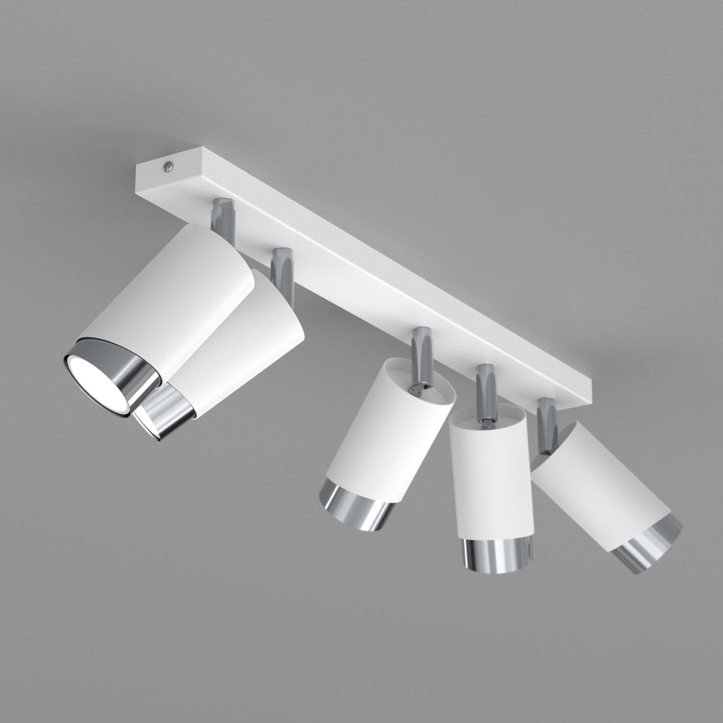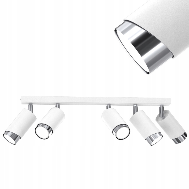 Stropna svetilka LED trak nastavljiva 5× Gu10 poševna bela kromirana Celoten opis