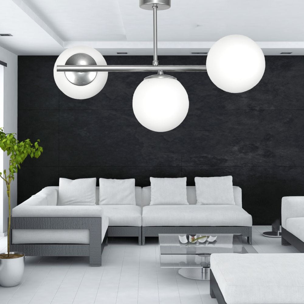 STROPNA VISEČA SVETILKA LESTENCI STEKLENI SENČNIKI KROGLE E14 LED TITAN SREBRNA 14–912 Celoten opis