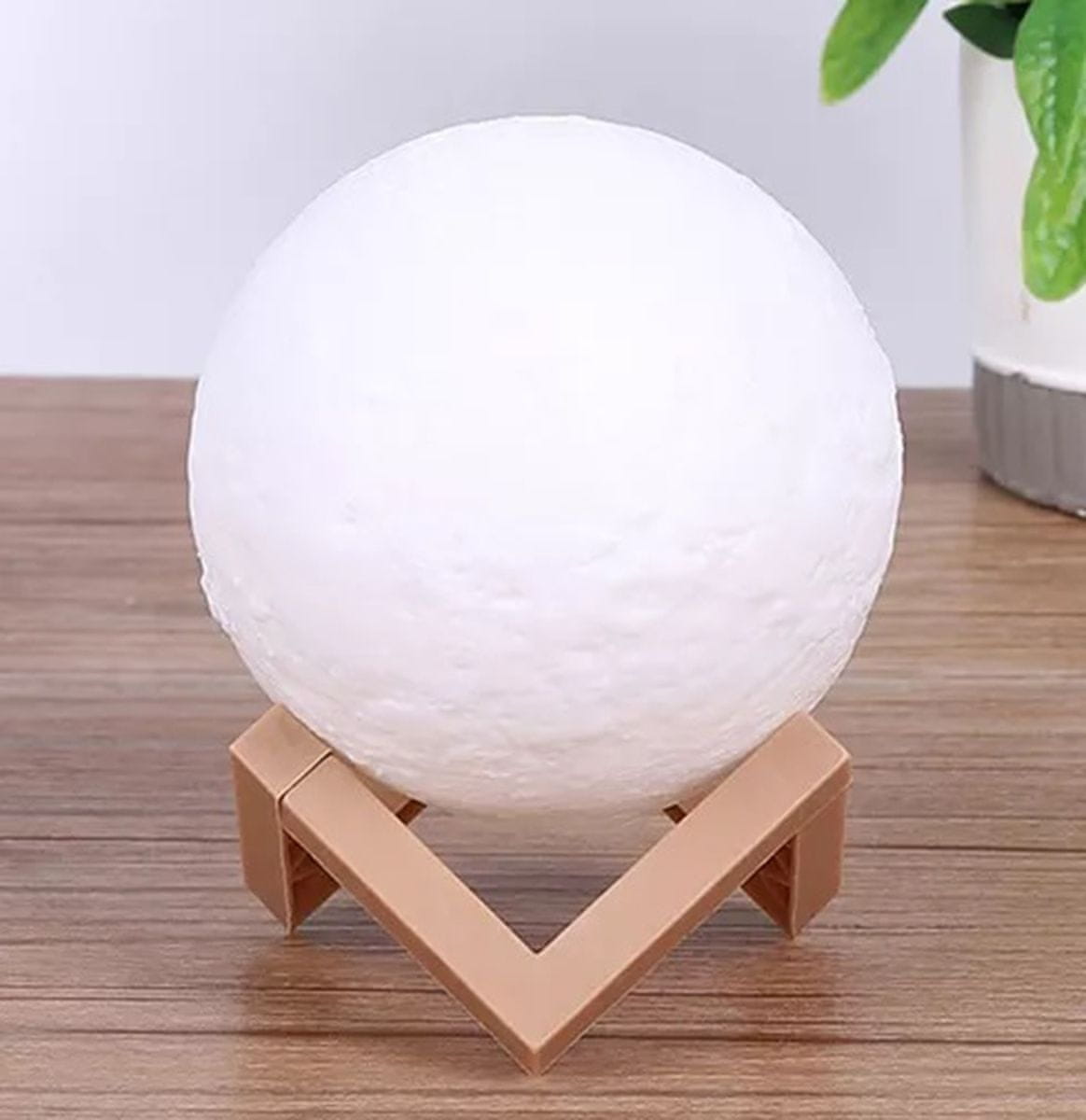 Kompaktna luč LED v obliki lune. Opremljena je s priročnim stikalom za vklop in izklop. Napaja se s priloženimi baterijami. Odlična kot klasična nočna svetilka ali kot pripomoček v otroški sobi. Svetilka sveti s hladno belo svetlobo. Priloženo ji je priročno leseno stojalo.