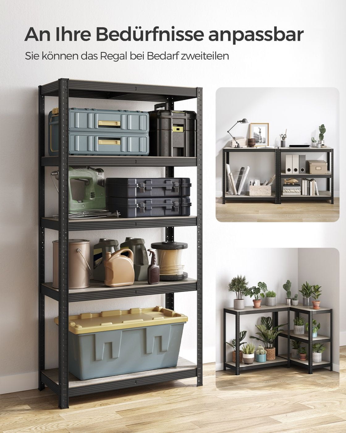 Ta trdna regalni komplet je idealen za organizacijo shramb, garaž ali kleti. Njegov ojačan jekleni okvir in nastavljive police zagotavljajo zanesljivo podporo za težke predmete, kar vam pomaga ohraniti prostor urejen in učinkovit. Celoten opis