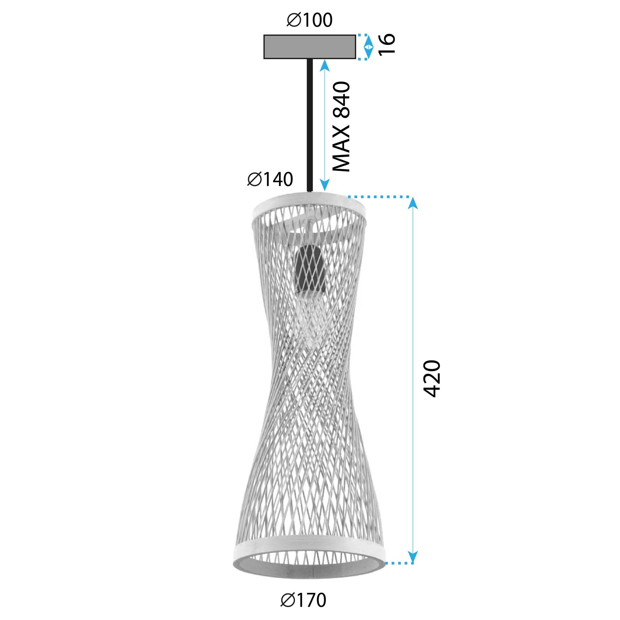 Pri izdelavi svetilke so bili uporabljeni materiali najboljše kakovosti. To omogoča lahkotno konstrukcijo in popolno površino, odporno na obrabo ali mehanske poškodbe. Edinstvena oblika se bo odlično obnesla v vsakem prostoru, ne glede na slog zaključka.Model: APP1637–1CPVrsta svetilke: Stropne – visečeSerija svetilk: NaturalDolžina (mm): 170Širina (mm): 170Višina (mm): 420Dolžina (mm): 840Napajanje: Omrežje ~220 V – ~240 VGradbeni material: Kovina, LesSvetlobni tok: določena z žarnicoBarva svetilke: DrugiŠtevilo svetlobnih točk: 1Uporabljena nit: E27Barva svetlobe: Določeno z žarnicoBarvna temperatura: Energijski razred: A – GVključen vir svetlobe: 0Zaščitni razred: IP20Soba: Pisarna, Jedilnica, Hodnik/ stopnišče, Kuhinja, Otroška soba, Dnevna soba, Spalnica, UniverzalniNajvečja moč žarnice: Napajanje: 60WDodatne funkcije: Nastavitev višine