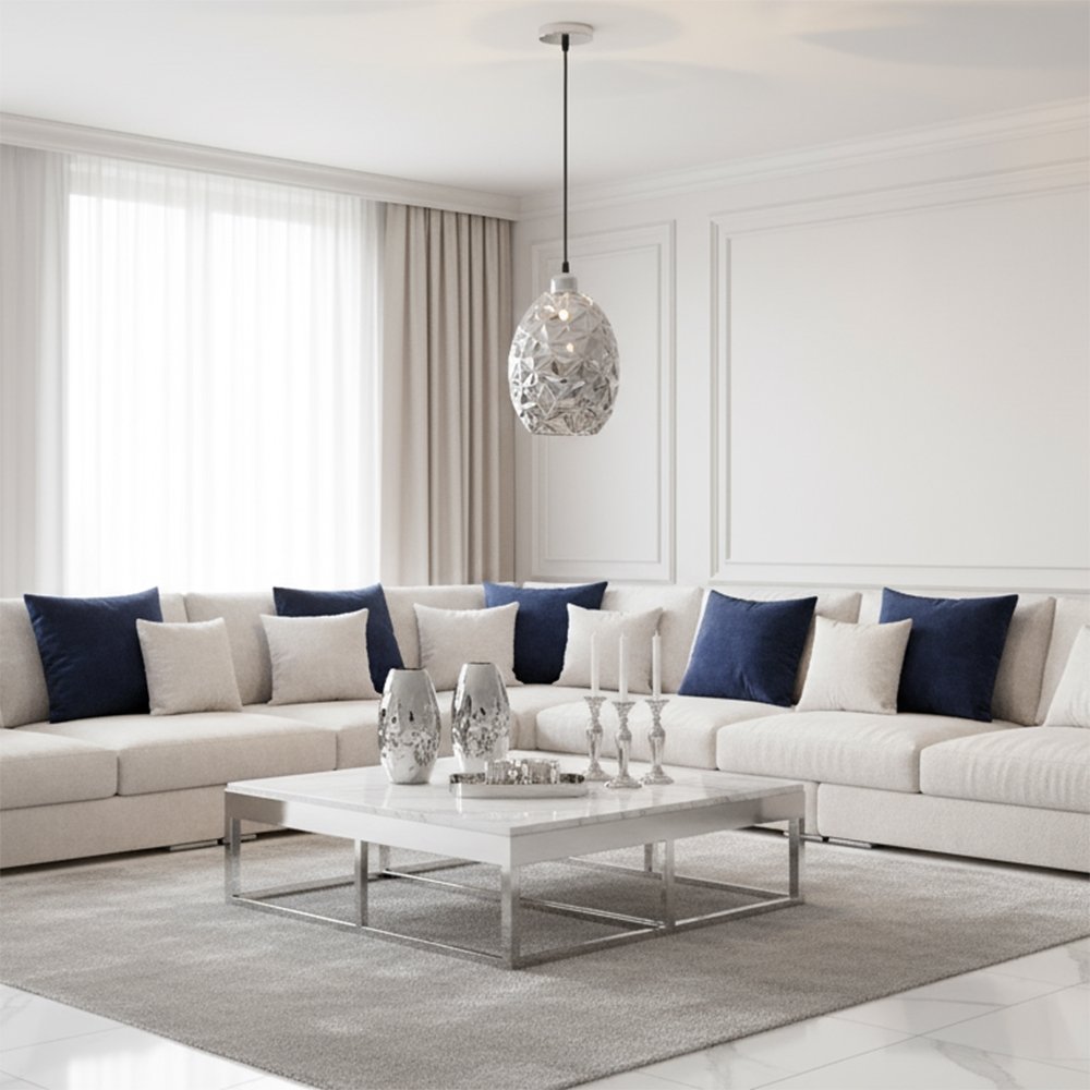 Sodobna stropna svetilka, izdelana z največjo pozornostjo do podrobnosti in detajlov. Slog, v katerem je bil ustvarjen, se bo odlično obnesel v sodobnih, minimalističnih notranjostih. Celoten opis