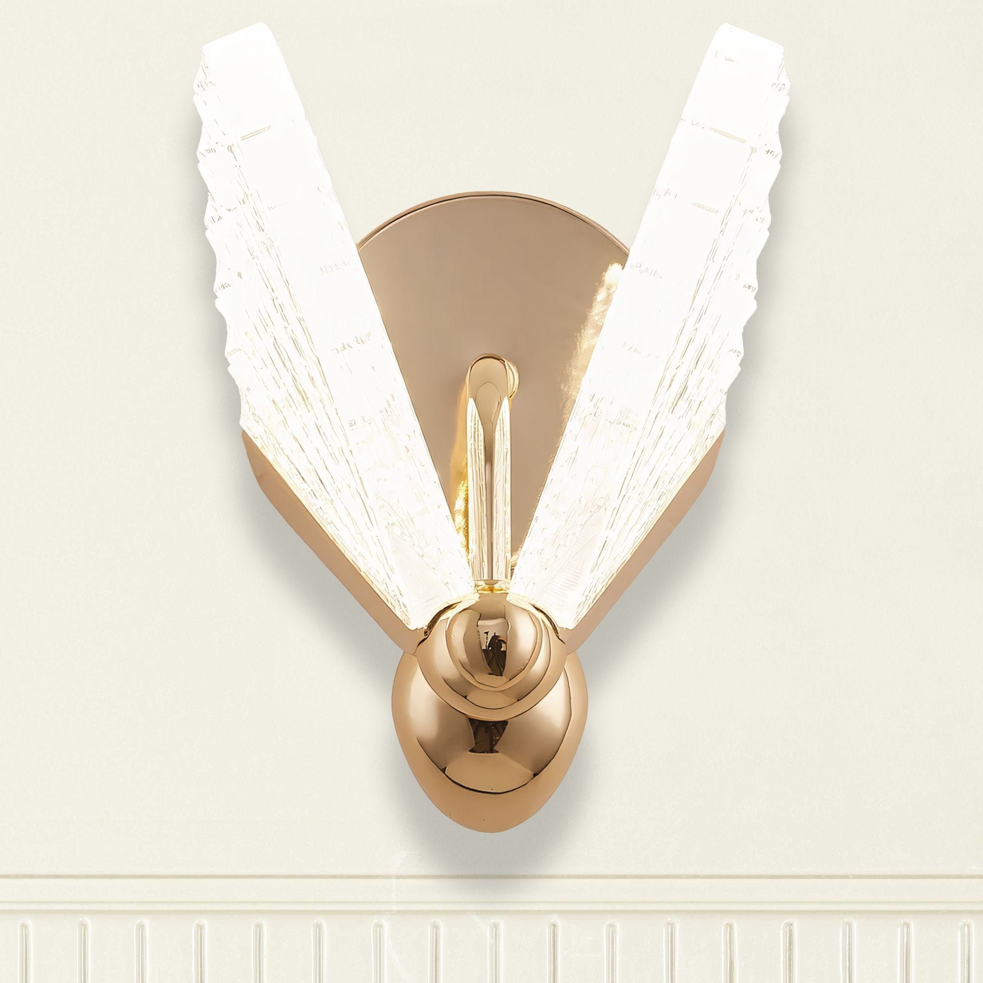Stenska svetilka LHJ104–1W zlataLHJ104–1W očara z akrilnimi metuljevimi krili, ki nežno razpršijo svetlobo in ustvarijo prijeten ambient. Celoten opis