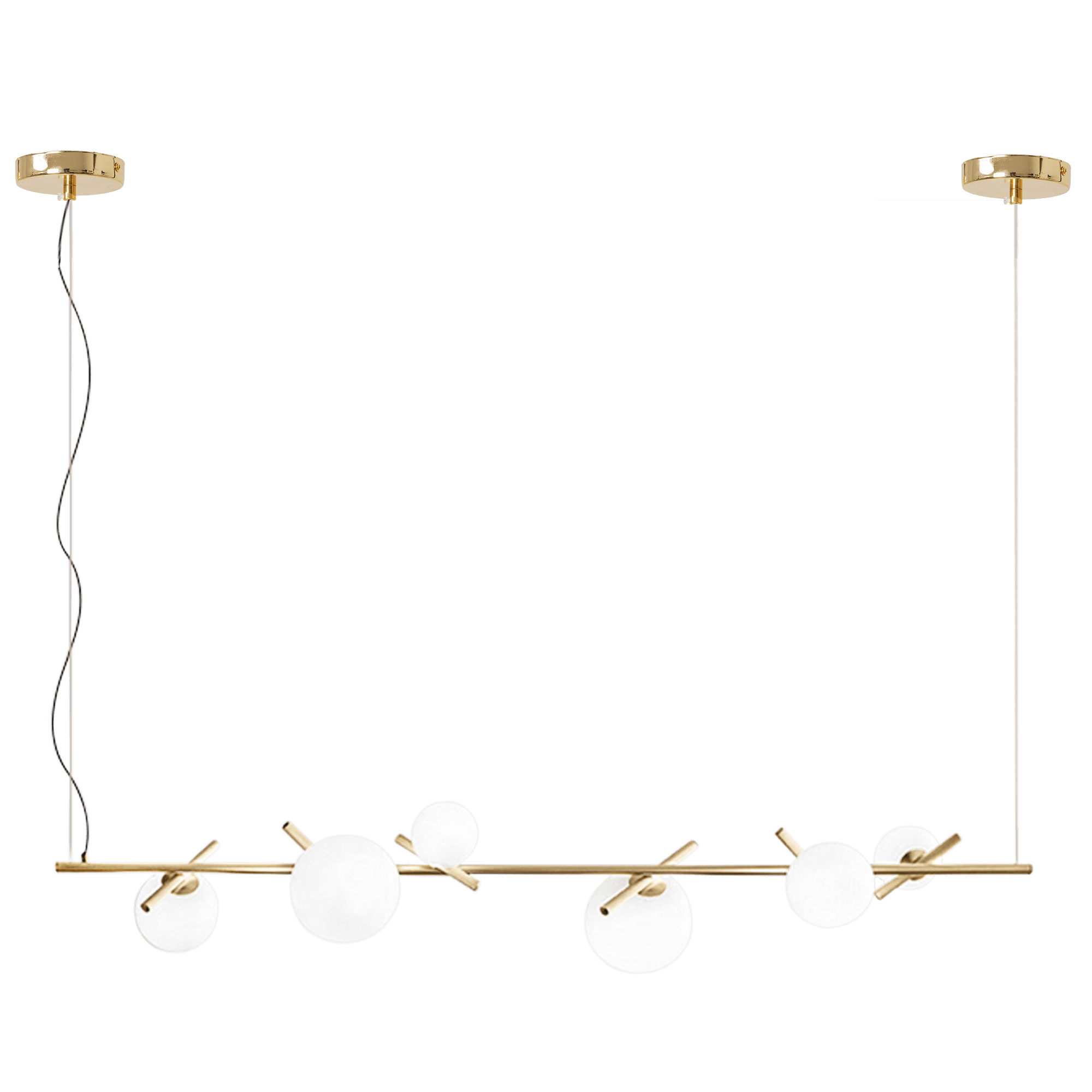 Za izdelavo svetilke je bil uporabljen material najboljše kakovosti. Tako je mogoče dobiti popolno površino, ki je odporna na praske in vse odrgnine ali mehanske poškodbe. Edinstvena oblika je kot nalašč za vsak prostor, ne glede na slog dodelave. Svetilka je namenjena samostojni montaži.Model: APP1664–6CPVrsta svetilke: Stropne – visečeSerija svetilk: Dolžina (mm): Širina (mm): Višina (mm): Dolžina (mm): Napajanje: Omrežje ~220 V – ~240 VGradbeni material: Steklo, KovinaSvetlobni tok: Barva svetilke: Bela, ZlatoŠtevilo svetlobnih točk: 6Uporabljena nit: G9Barva svetlobe: Določeno z žarnicoBarvna temperatura: Energijski razred: A – GVključen vir svetlobe: 0Zaščitni razred: IP20Soba: Pisarna, Jedilnica, Hodnik/ stopnišče, Kuhinja, Dnevna soba, Spalnica, UniverzalniNajvečja moč žarnice: 60WNapajanje: Dodatne funkcije: