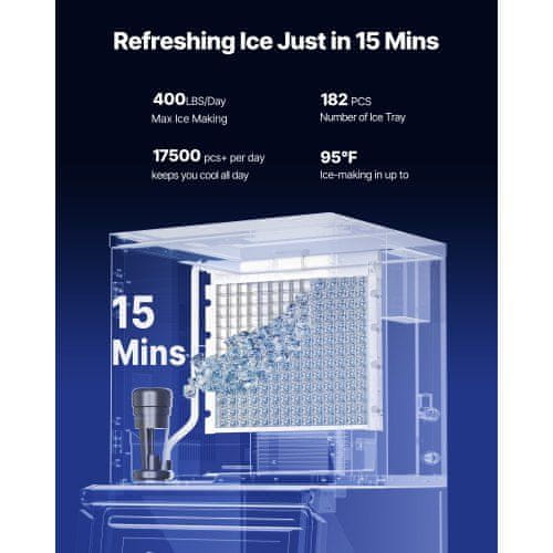 Ta komercialni stroj za izdelavo ledu je zasnovan za izpolnjevanje visokih zahtev barov kavarn restavracij in drugih poslovnih okolij ki potrebujejo zanesljivo in neprekinjeno oskrbo z ledom. Z veliko posodo za shranjevanje in napredno izolacijo zagotavlja da led ostane svež in pripravljen za uporabo skozi ves dan. Stroj ima uporabniku prijazen zaslon na dotik samodejne funkcije čiščenja in nastavljivo debelino ledu za različne potrebe.