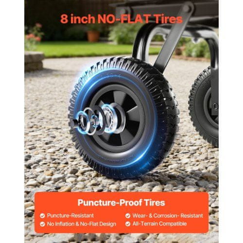 Ta vrtni priklopni voziček je zasnovan za učinkovitejše delo na dvorišču in kmetiji kar vam omogoča enostaven prevoz zemlje rastlin pridelkov in odpadkov. Opremljen je s hitrim mehanizmom za nagibno iztovarjanje in gladkimi kolesi kar je idealno za različna zunanja opravila. Lahka a trpežna konstrukcija zagotavlja zanesljivo delovanje in enostavno vzdrževanje za dolgotrajno uporabo.
