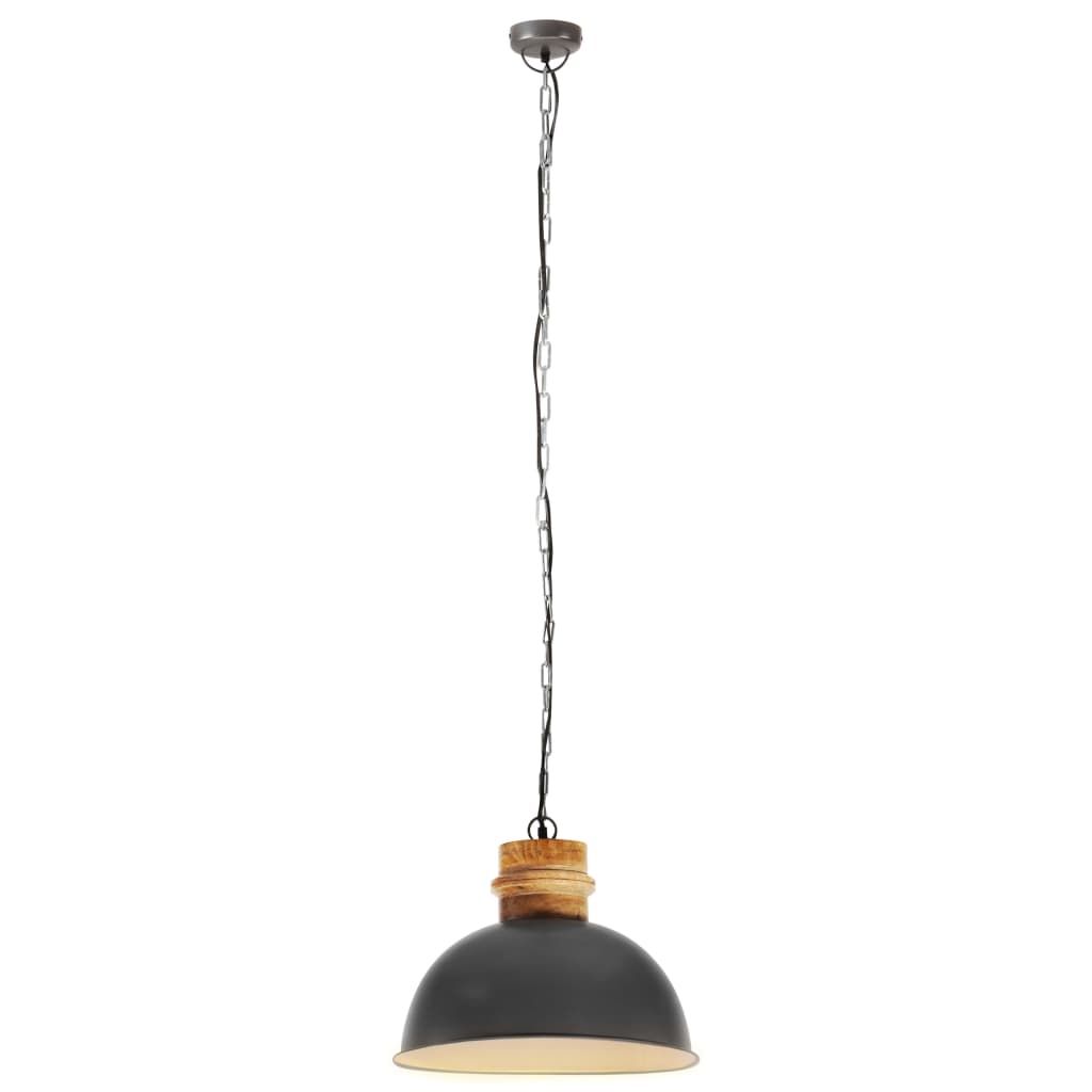 Vidaxl Industrijska viseča svetilka siva okrogla 42 cm E27 mangov les