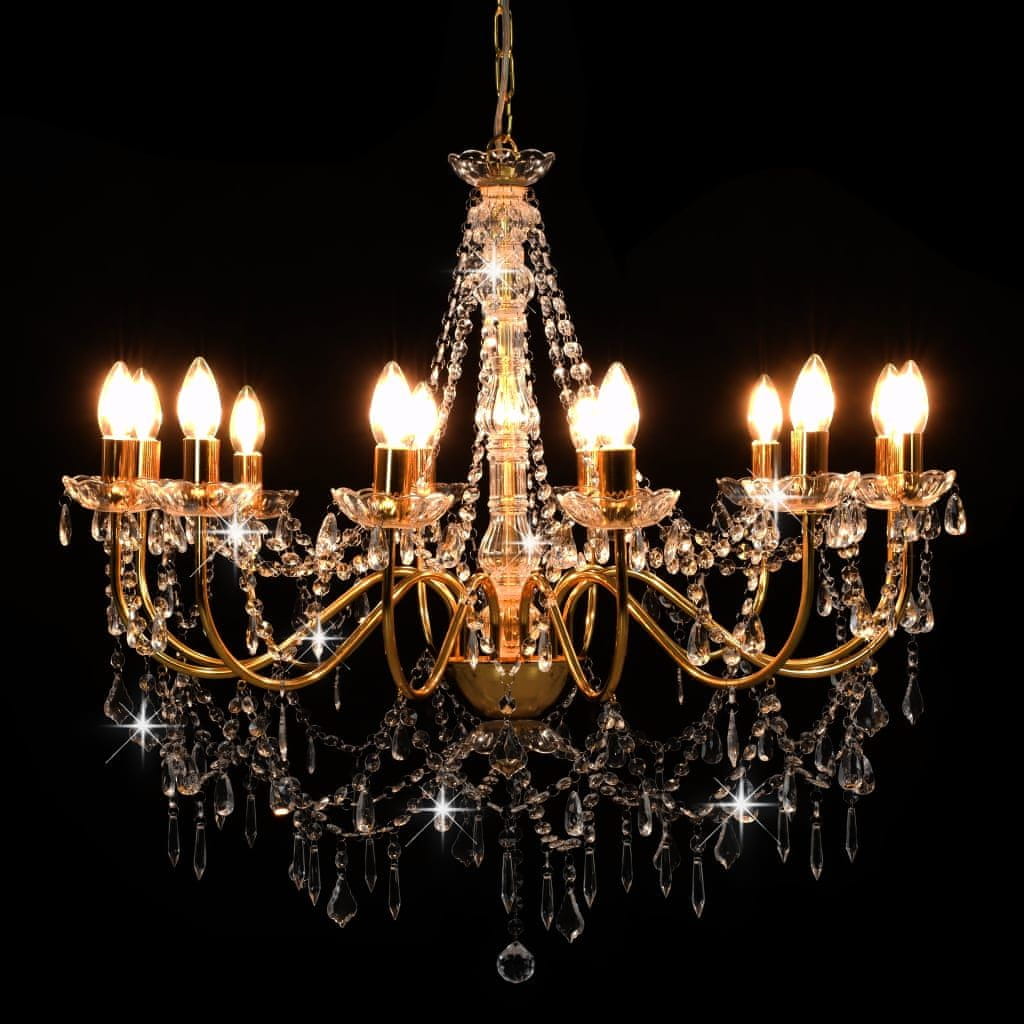 Vidaxl Lestenec s kroglicami zlat 12 x E14 žarnice