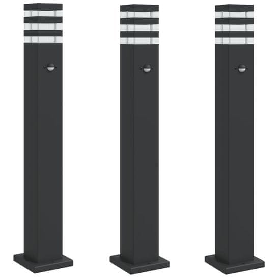 Vidaxl Zunanja talna svetilka s senzorjem 3 kosi črna 80 cm aluminij