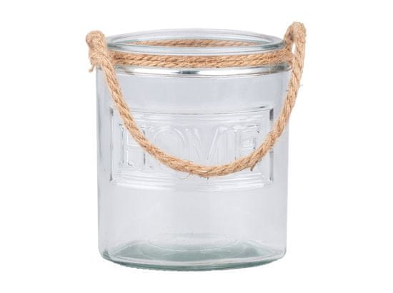 Prostorna steklena svetilka z vrvno obeso za svečo ali svetlobno verigo. Celoten opis