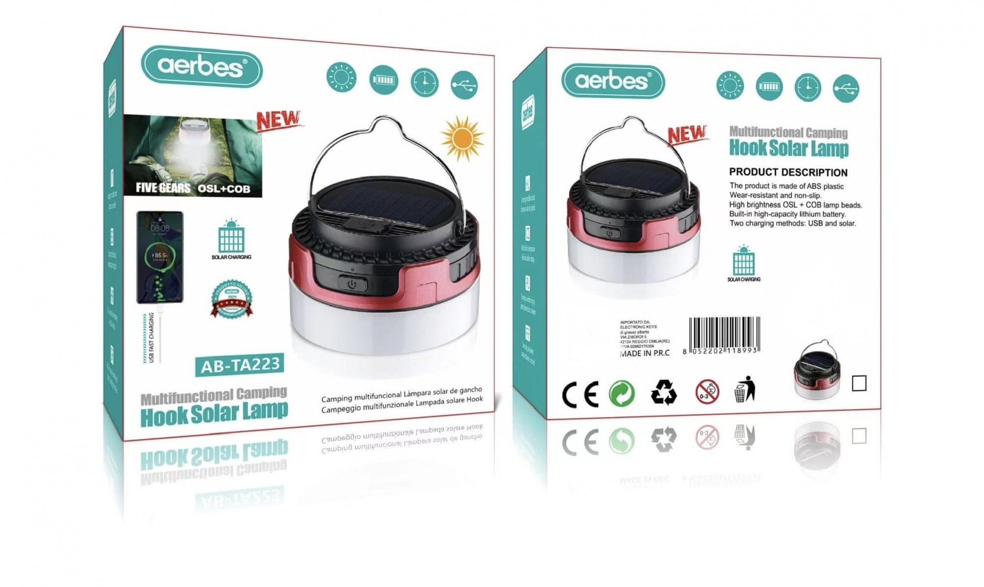 Aerbes 2v1 Solarna Svetilka za Kampiranje + Powerbank