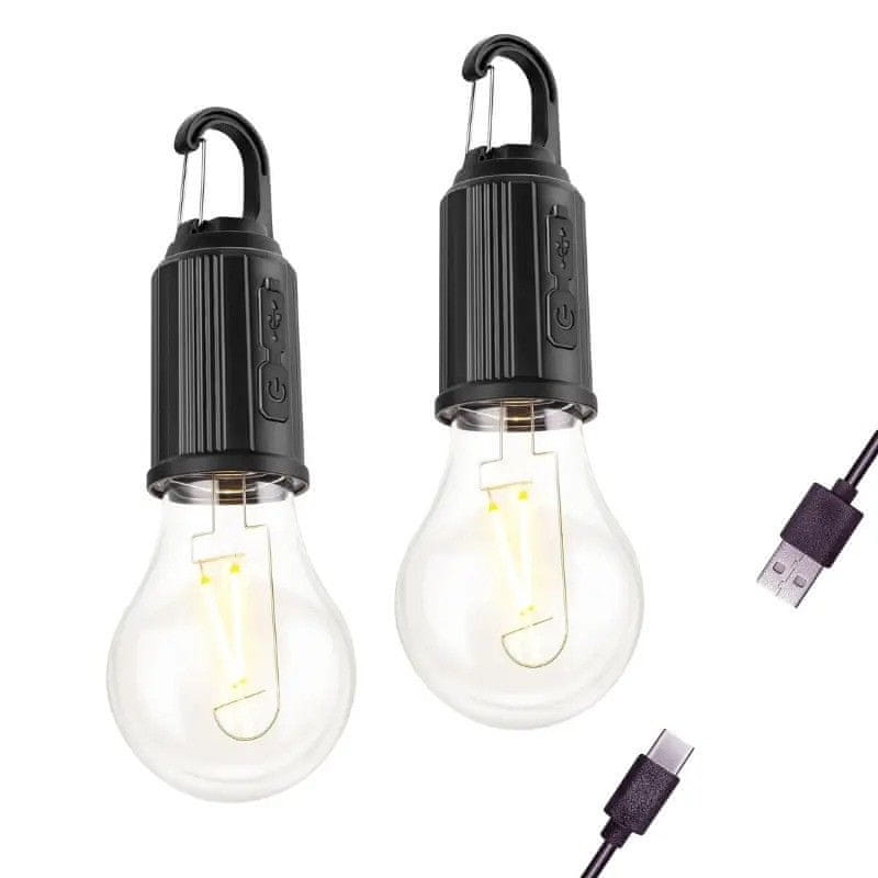 Homey Set 2 žarnic na baterijo | Baterijska svetilka | USB polnjenje | Topla svetloba | S karabinom