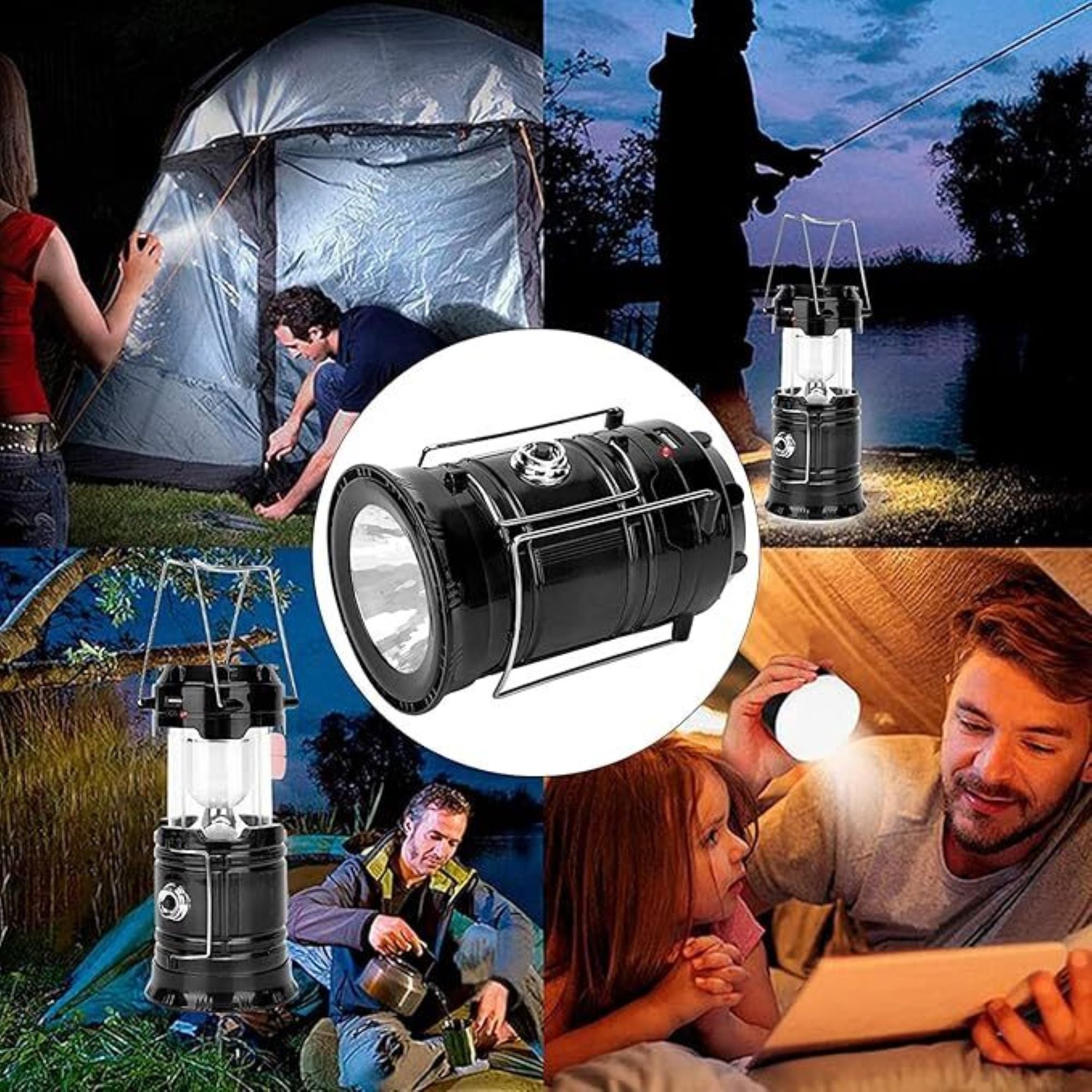 VIVVA® Kamp svetilka, Prenosna luč za kampiranje, pohodništvo, Polnjenje na sončno energijo ali USB kablom (Črna) | CAMPGLO
