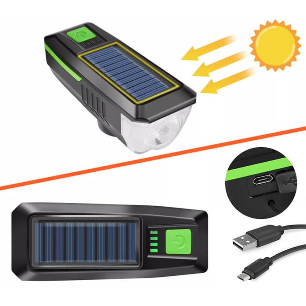 GOTEL Solarna akumulatorska LED kolesarska svetilka in sirena 2000mAh USB