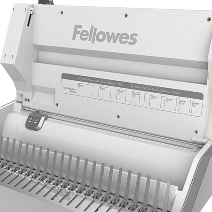 • Veže dokumente s plastično špiralo kapacitete do 300 listov in špiralno luknjajnje do 20 listov. Sprejme špiralo širine do 38mm