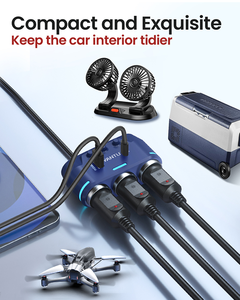 Opremljena z tri stikala, ki vam omogočajo neodvisno upravljanje vsake vtičnice cigaretnega vžigalnika, kar ponuja priročno upravljanje napajanja.