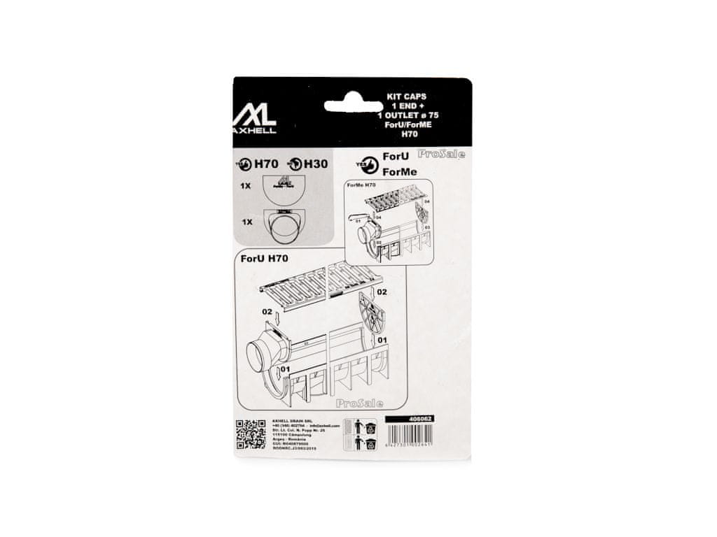 Komplet vključuje 2 steni (končni pokrovčki), ki zadostujeta za zaporo 1 celotne linije na obeh straneh, ena pa ima priključek za cev ø75.