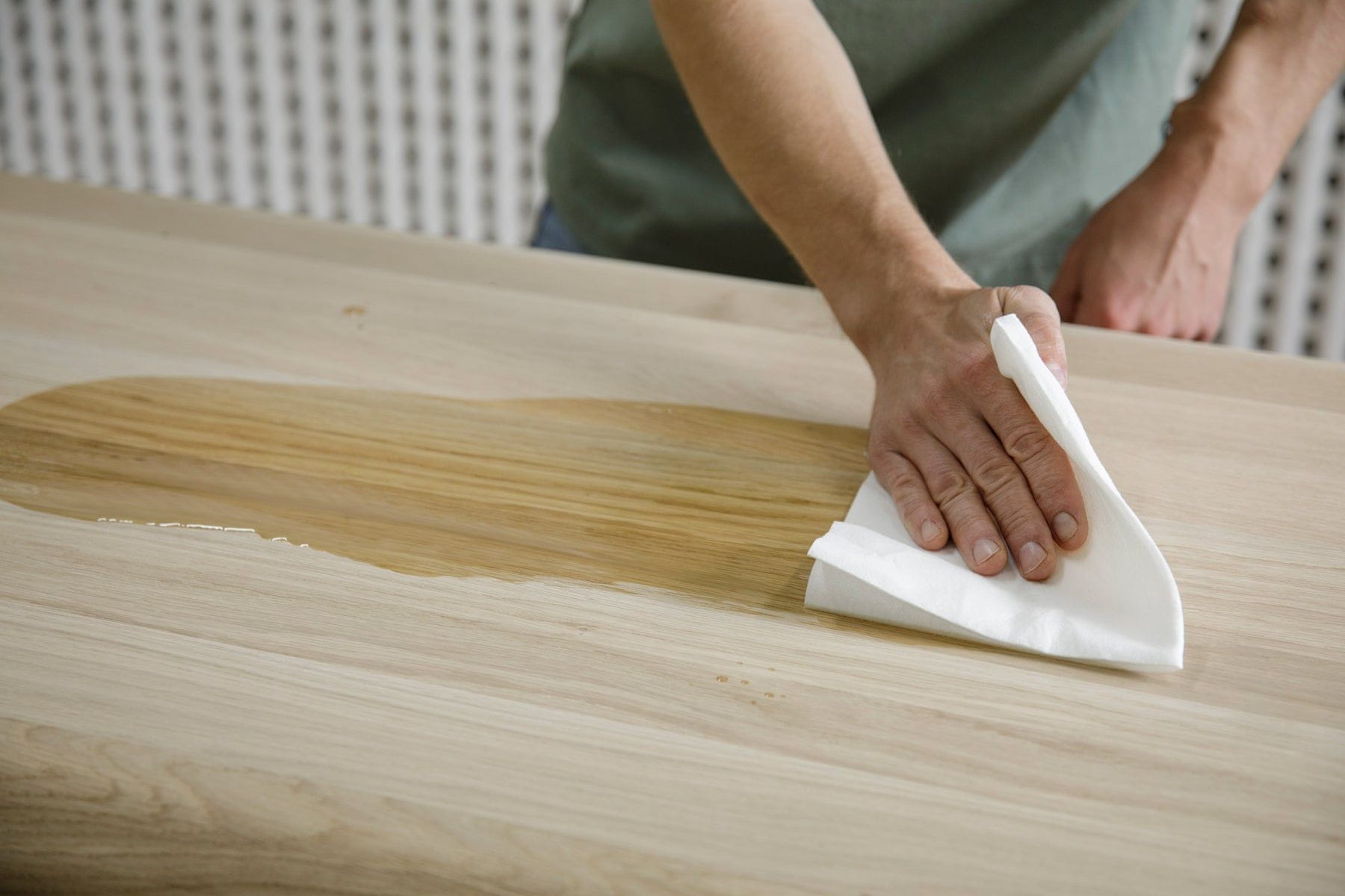 Komplet vsebuje brusni papir granulacije 150 in 240 – s tem lahko temeljito zbrusite, matirate in zgladite površino mize ter jo pripravite na oljenje.