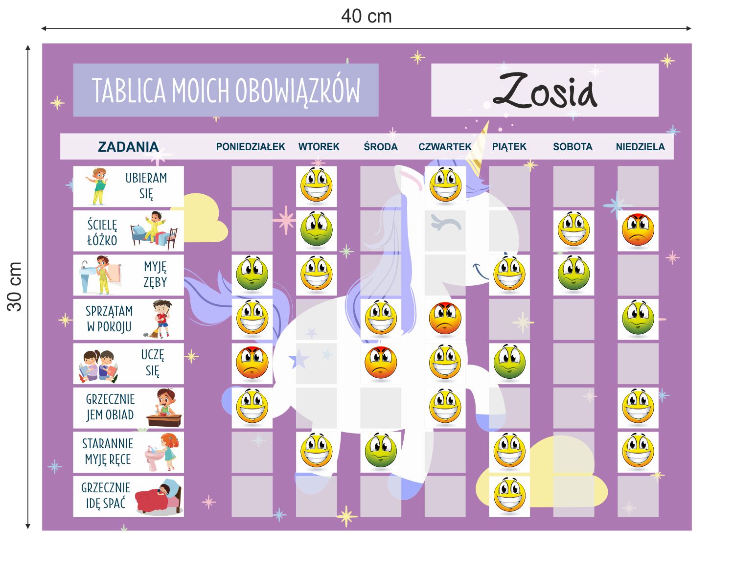 ✨Prilagodljivost– lahko dodate lastne naloge in tablo prilagodite otrokovim potrebam.