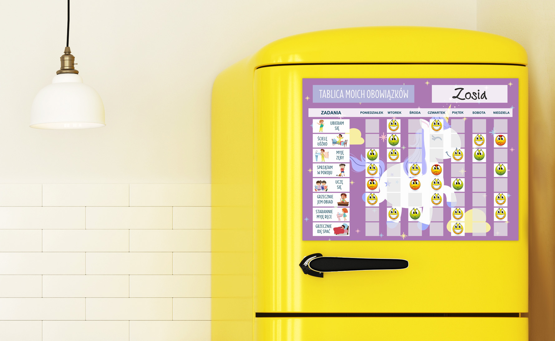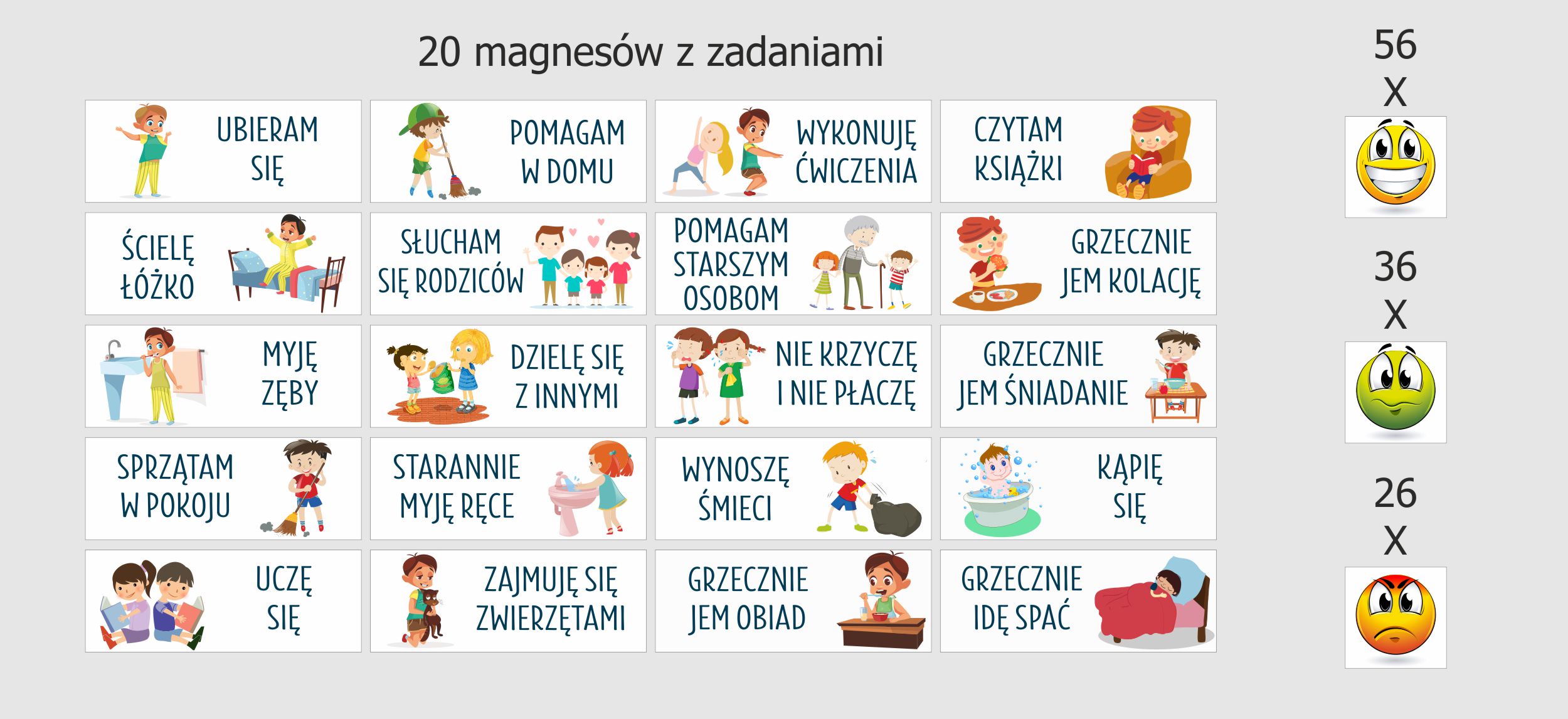 ✨Pripravljene magnetne naloge– komplet 20 magnetkov s priljubljenimi otroškimi opravili. Pripravljen sistem organizacije nalog.
