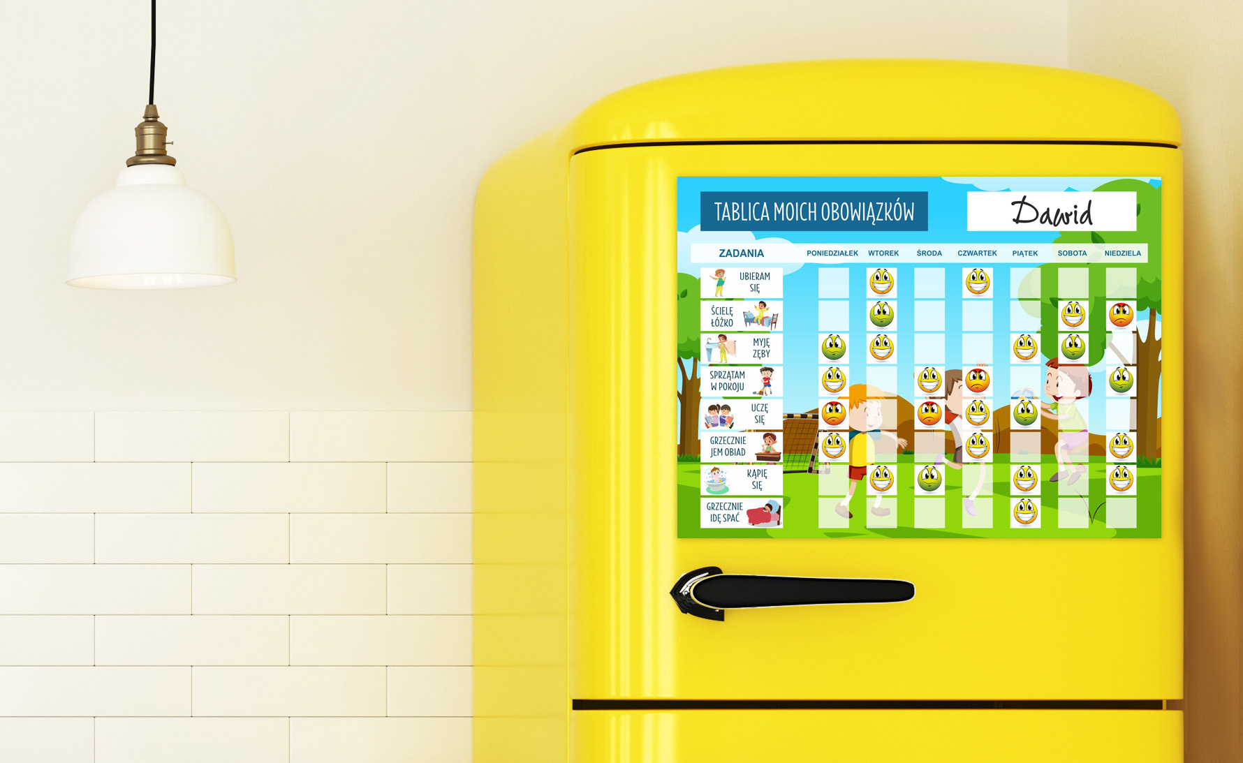 ✨Pripravljene magnetne naloge– komplet 20 magnetkov s priljubljenimi otroškimi opravili. Pripravljen sistem organizacije nalog.