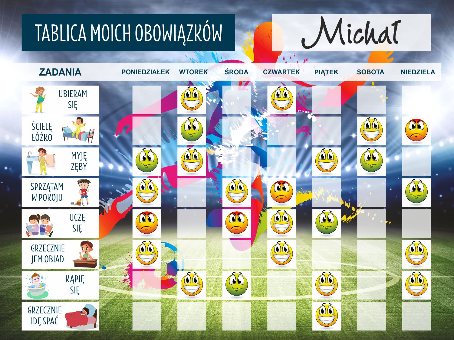 - Izberite naloge za svojega otroka– seznam opravil vključuje: oblačenje, postiljanje postelje, umivanje zob, čiščenje, učenje, dobro prehranjevanje ali kopanje.
