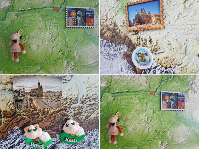Magnetni samolepilni zemljevid Poljske s potovalnimi magneti Celoten opis