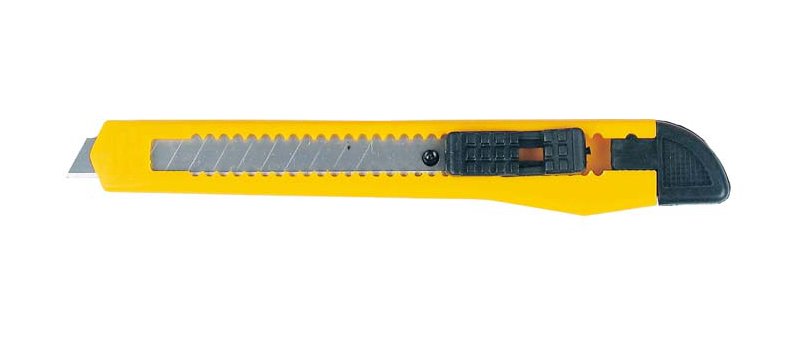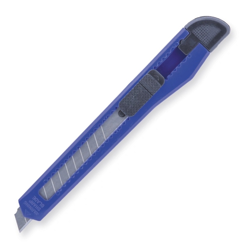 Majhen, ergonomski pisarniški nož z odlomljivim rezilom iz nerjavečega jekla. Zavarovan z gumbom, ki zaklene položaj rezila. Noži imajo odlomljiva rezila, ki zagotavljajo enakomeren in visokokakovosten rezalni rob ter visoko togost celotnega rezila kljub segmentirani zasnovi. Ti noži so idealni za lažja dela, npr. rezanje lepilnega traku, papirja, kartona, folije, tapet itd. 9 mm rezilo.