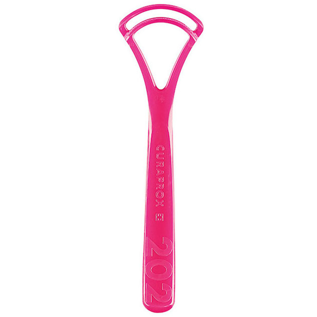 • Strgalo za jezik Curaprox je nepogrešljivo orodje za učinkovito odstranjevanje oblog z jezika in odpravljanje neprijetnega zadaha.