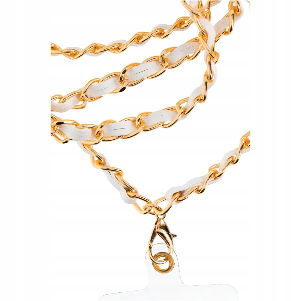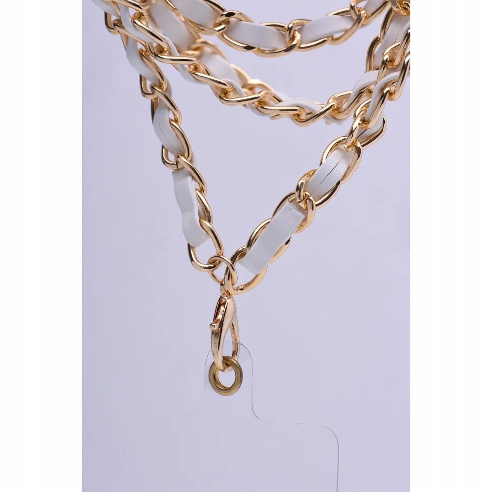 Obesek za telefon z zlatimi elementi. Zahvaljujoč dolgemu traku, ki ga obesite okoli vratu, se vam ni treba ločiti od vaše najljubše naprave. Ta dodatek v večno modnih barvah bo dobro dopolnil vaš stajling.
