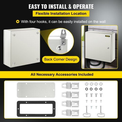 Ta jekleni NEMA ohišje je zasnovano za zanesljivo zaščito električne opreme tako v notranjih kot zunanjih okoljih. Izdelano iz robustnega hladno valjanega jekla nudi izboljšano odpornost proti obrabi prahu in vodi zaradi česar je primerno za uporabo v različnih zahtevnih okoljih kot so tovarne gradbišča in stanovanjska območja. Ohišje ima varnostni ključavnico in tečajni sistem snemljivo montažno ploščo za enostavno namestitev ter premišljene oblikovne podrobnosti za lažje ožičenje in zagotavljanje varnosti.