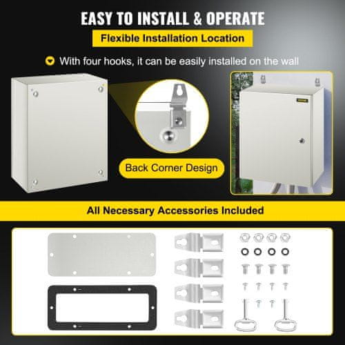 Ta NEMA teraskorpus on loodud usaldusväärseks kaitseks elektrikomponentidele nii siseruumides kui ka välitingimustes. Valmistatud vastupidavast külmvaltsitud terasest pakub see suurepärast kulumis- vee- ja tolmukindlust muutes selle sobivaks kasutamiseks karmides tingimustes. Turvalise lukustus- ja hingedega süsteemi ning eemaldatava paigaldusplaadiga tagab see elektriline ühenduskast ohutuse lihtsa paigalduse ja pikaajalise töökindluse.